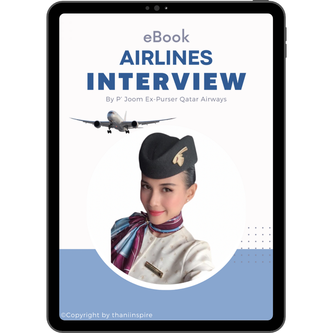 📣 และถ้าอยากฝึกตอบแบบลงลึก พี่จุ๋มได้รวบรวมตัวอย่างคำถาม-คำตอบแบบนี้ไว้อีกกว่า 40 คำถาม พร้อมตอบคำถามแนว In-flight Scenario กว่าอีก 50 สถานการณ์ในไฟลท์ ไว้ใน eBook Airlines Interview ให้น้องเอาไปปรับเป็นแนวคำตอบของตัวเอง