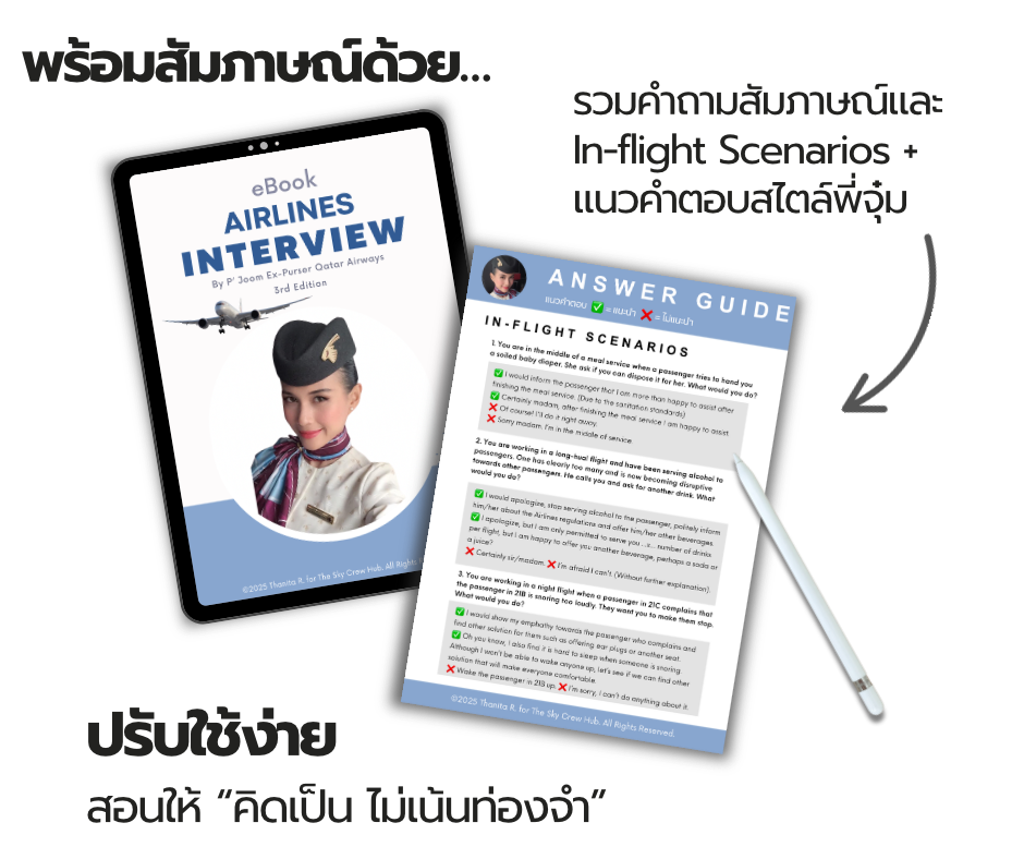 พี่จุ๋มมี eBook Airlines Interview ครบเครื่องเรื่องสัมภาษณ์งานกับ Airline มานำเสนอ คลิกดูรายละเอียดด้านล่างได้เลยค่ะ