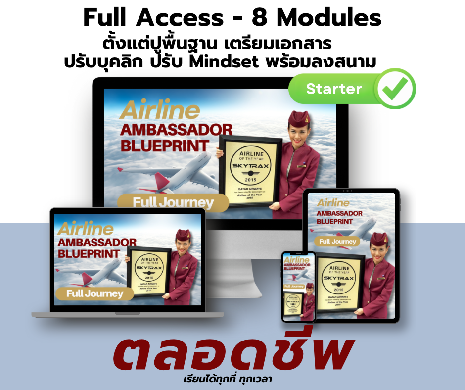 สำหรับน้องที่ไม่เคยลงสนามเลย หรืออยากรีเซ็ตระบบตัวเองใหม่ พี่จุ๋มแนะนำแพ็กเกจ Full Journey — ปูพื้นฐานทั้งเรื่องอาชีพ การเปลี่ยนตัวตน (Identity Shift) การเตรียมความพร้อมด้านภาพลักษณ์ (Grooming) มาตรฐานระดับ 5 ดาว Body Language การสร้างเสน่ห์หรือ Charisma และการเตรียมตัวสมัครงานจริงกับสายการบิน